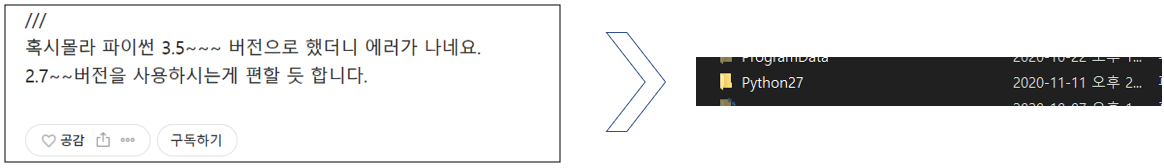 : git clone으로 설치를 하면 자동으로 python 경로에 pydbg가 설치되어 해당 방법을 사용했다. 이 방법으로 import한 결과, from pydbg import *는 정상적으로 수행됐지만 from pydbg.defines import * 실행 시 모듈이 없다는 오류가 발생했다. python 파일 내부의 모듈을 확인해보아도 있었음에도 없다는 오류가 발생하여 검색해본 결과, 파이썬 구버전 설치를 권고하여 파이썬 버전 재설치를 수행했다.