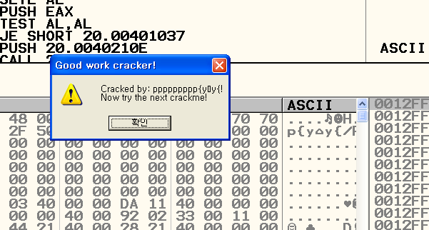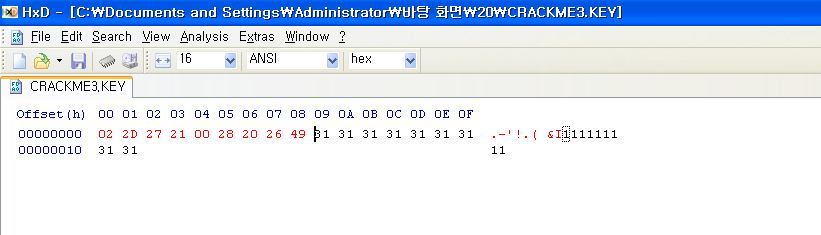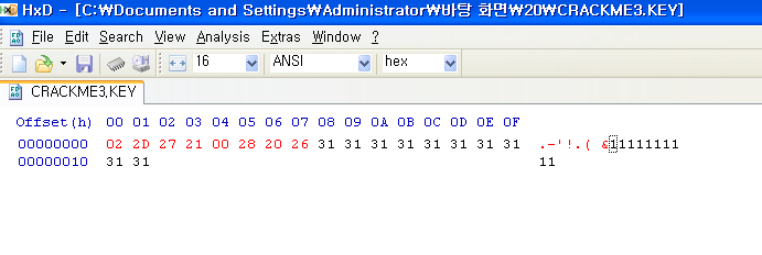 'Cracked by: CodeEngn!' 문구가 출력 되도록 하려면 crackme3.key 파일안의 데이터는 무엇이 되어야 하는가