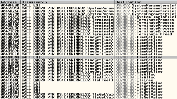디버거를 우회한 후, Search for > All intermodular calls를 통해 호출되는 모든 API 함수를 살펴보던 중, timeGetTime이라는 함수를 발견하였다.