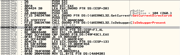 이에 IsDebuggerPresent를 우회하기 위해 해당 함수를 TEST에서 CMP로 변경하고 실행하였다.
