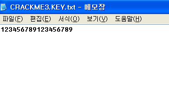 CRACKME3.KEY 파일 생성. 18바이트 문자열 입력.