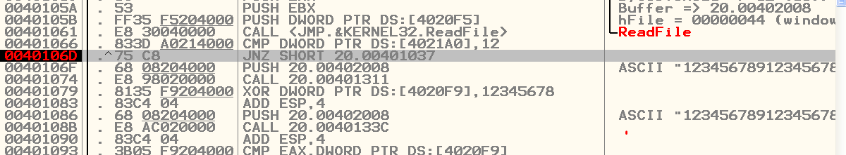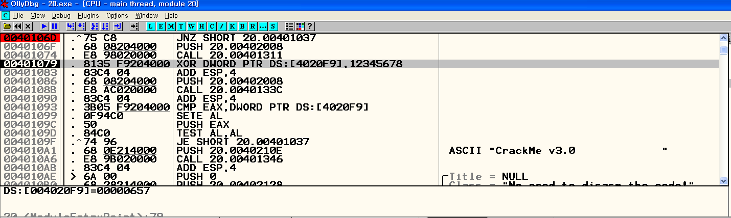 4020F9의 값과 12345678 값과 xor 하고 0040133C 함수를 호출하는 것을 확인.