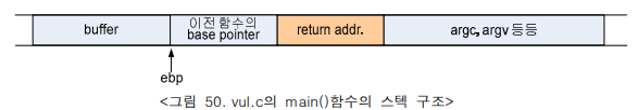 vul.c를 overflow 시킬 데이터의 구조는 그림 51과 같음.