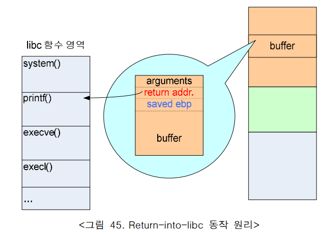 스텍 영역의 코드를 실행하지 못하게 하는 non-executable stack보호 기법이나 일부 IDS에서 네트워크를 통해 쉘 코드가 유입되는 것을 차단하는 보호 기법을 뚫기 위한 방법으로 제안.