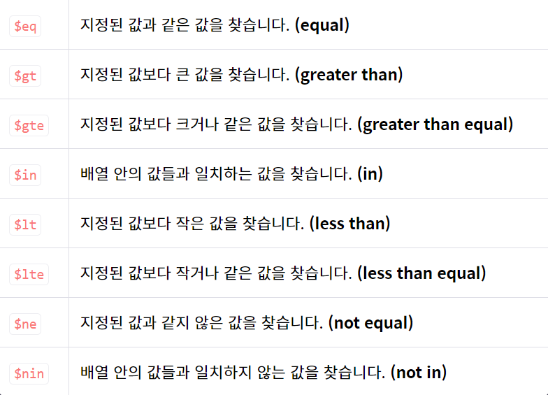 :Query Operator 표 (아래)