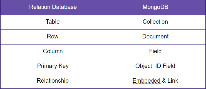 : 관계형 데이터베이스와 MongoDB의 비교 표 (아래)